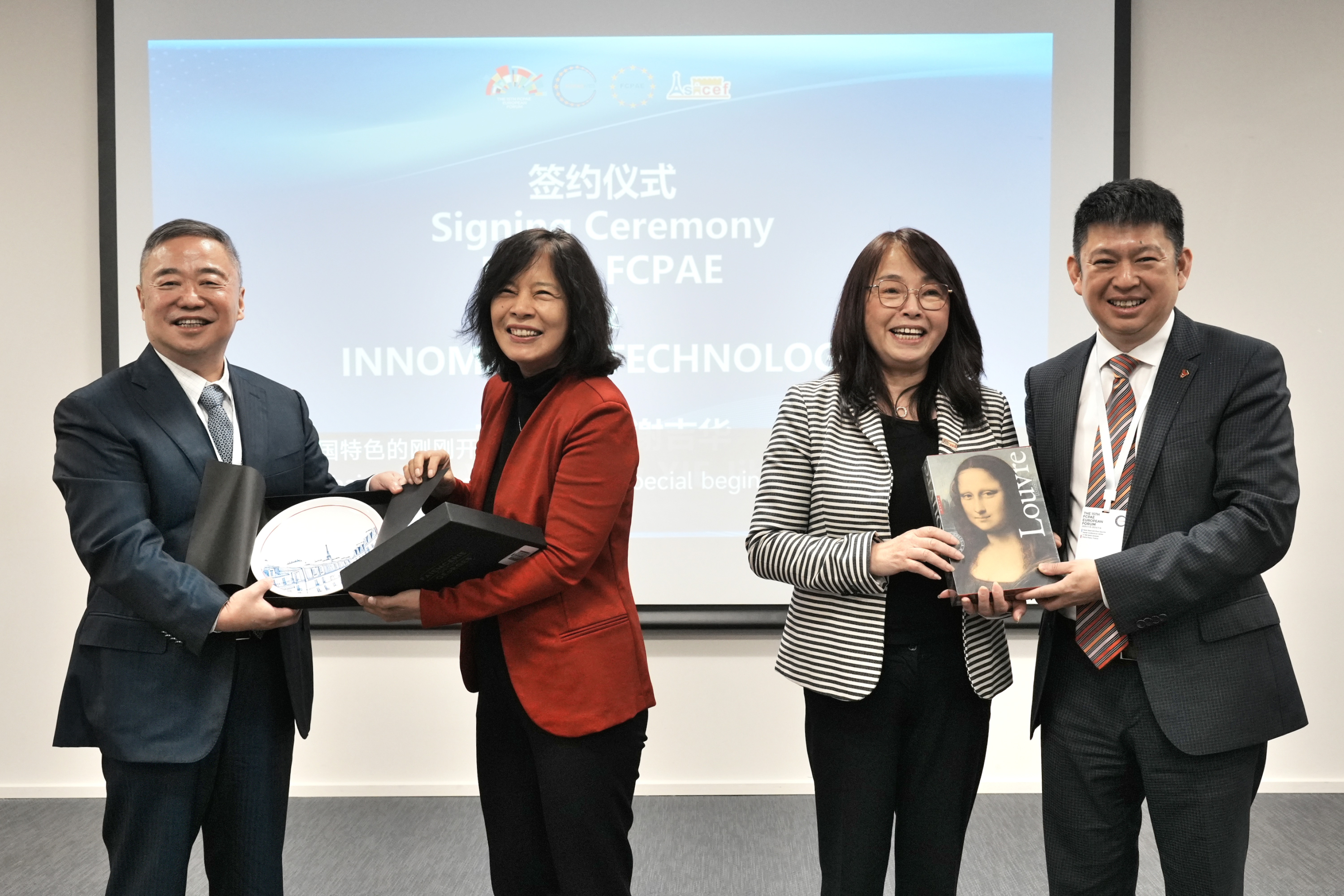 在杨新育大使和现任FCPAE轮值主席丁力女士的见证下,刘晓玲秘书长还代表全欧华人专业协会联合会与上海全国高校技术市场有限公司签署了《谅解备忘录》、与山东科创国际人才发展基金会签署了《中欧人才发展基金合约》。